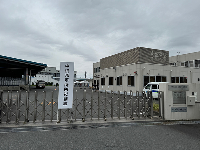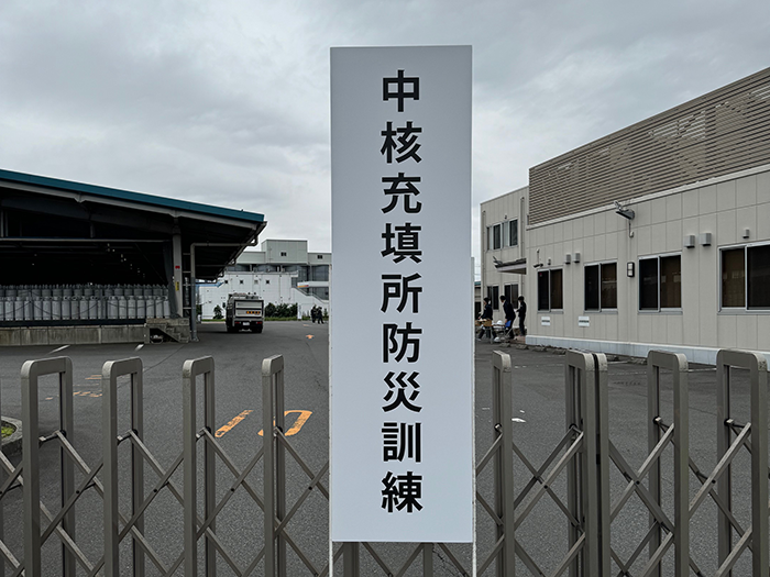 10月26日(土)中核充てん所稼働訓練を(株)エネアーク関東神奈川支店(厚木支部)で実施しました。訓練は地震発生後の①構内設備確認・充填機の再稼働、②外部との連絡・共通バーコードを使用した代替供給訓練、③散水訓練の3部構成で実施。訓練実施事業者など関係者46名が参加しました。